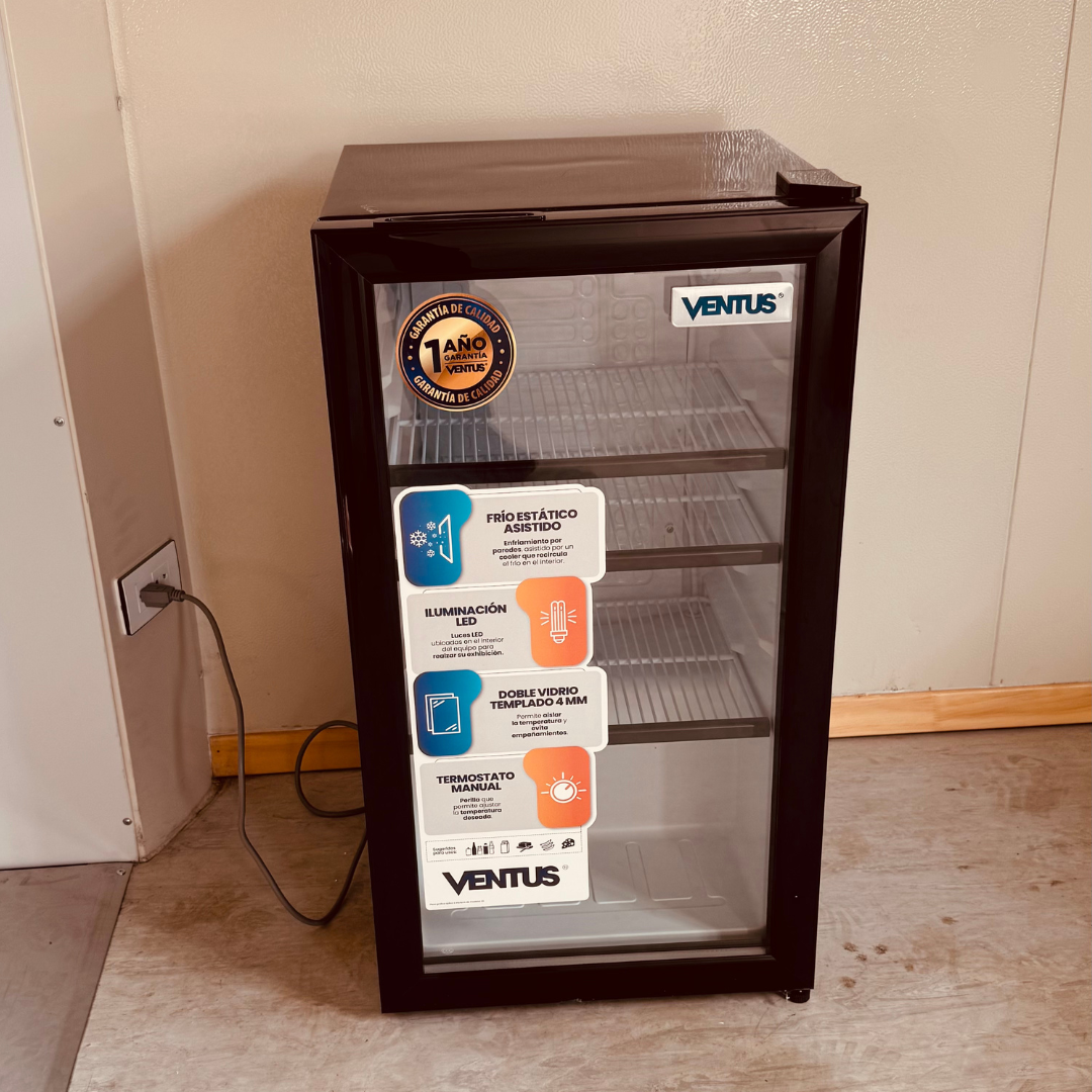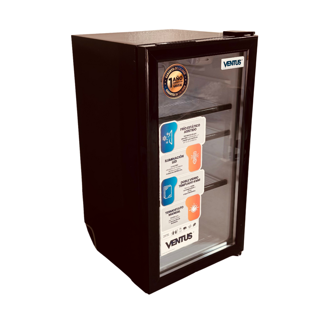 Visicooler Ventus 92 Litros Puerta de vidrio Color Negro con Luz led interna.
